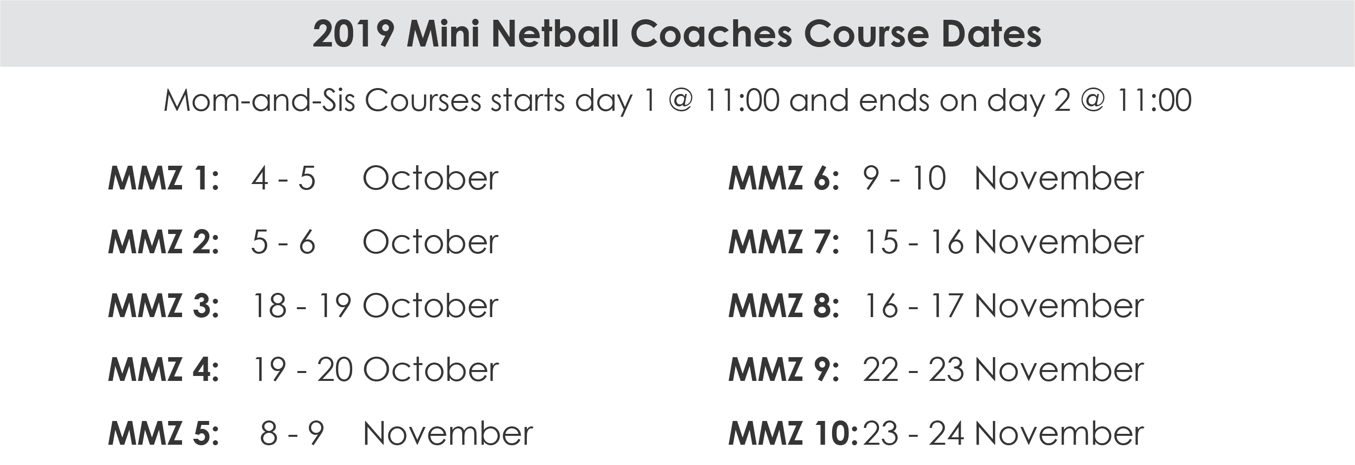 The Mini-Netball Coaches Course is presented in four sessions that is rolled out over four separate afternoons.